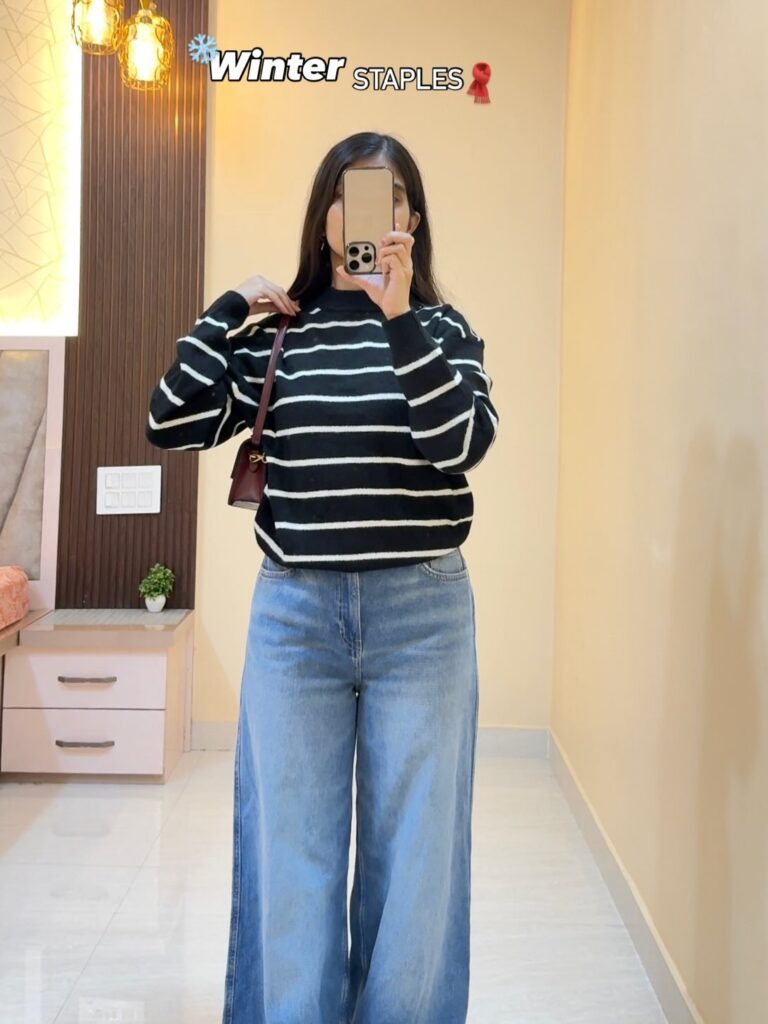 12. Effortless Stripes & Wide-Leg Denim 💙🖤