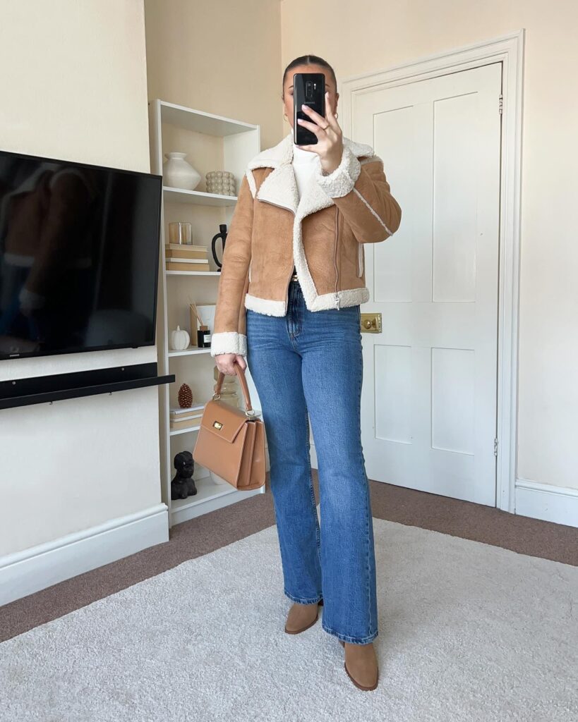 2. Shearling & Denim = Winter Magic 🤎🧥